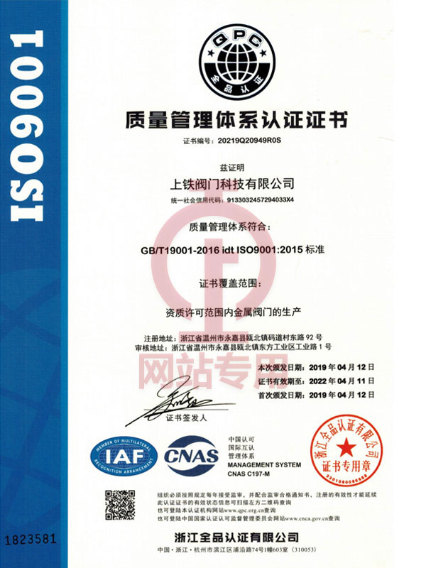 上鐵閥門科技有限公司位于“中國泵閥之鄉(xiāng)”——溫州甌北,交通便利,是一家集設(shè)計、制造、銷售、服務(wù)于一體的專業(yè)閥門廠家,公司主要生產(chǎn)美標閥、電站閥、國標閘閥、截止閥、止回閥、球閥、蝶閥、水封閥、真空閥等系列產(chǎn)品,產(chǎn)品規(guī)格從DN10—1800mm口徑,公稱壓力從PN1.0—42Mpa,規(guī)格齊全,材質(zhì)多樣,并可根據(jù)客戶要求配置齒輪傳動、蝸輪蝸桿傳動、氣動、電動、液動、氣液聯(lián)動裝置。